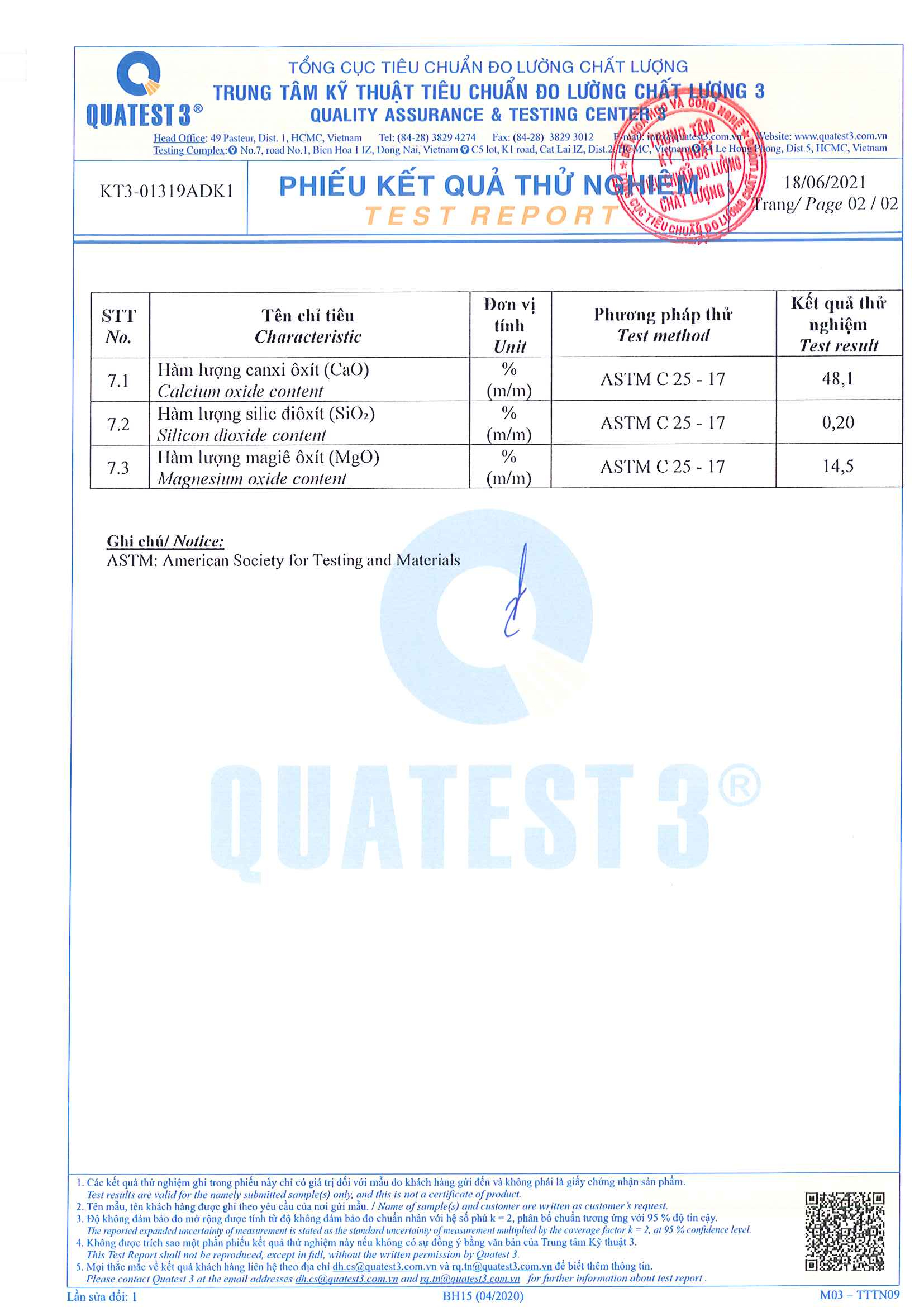 Thành phần : CaO : 45 - 65% ; MgO : 12 -15 % ; SiO2 : 0.2 % ....