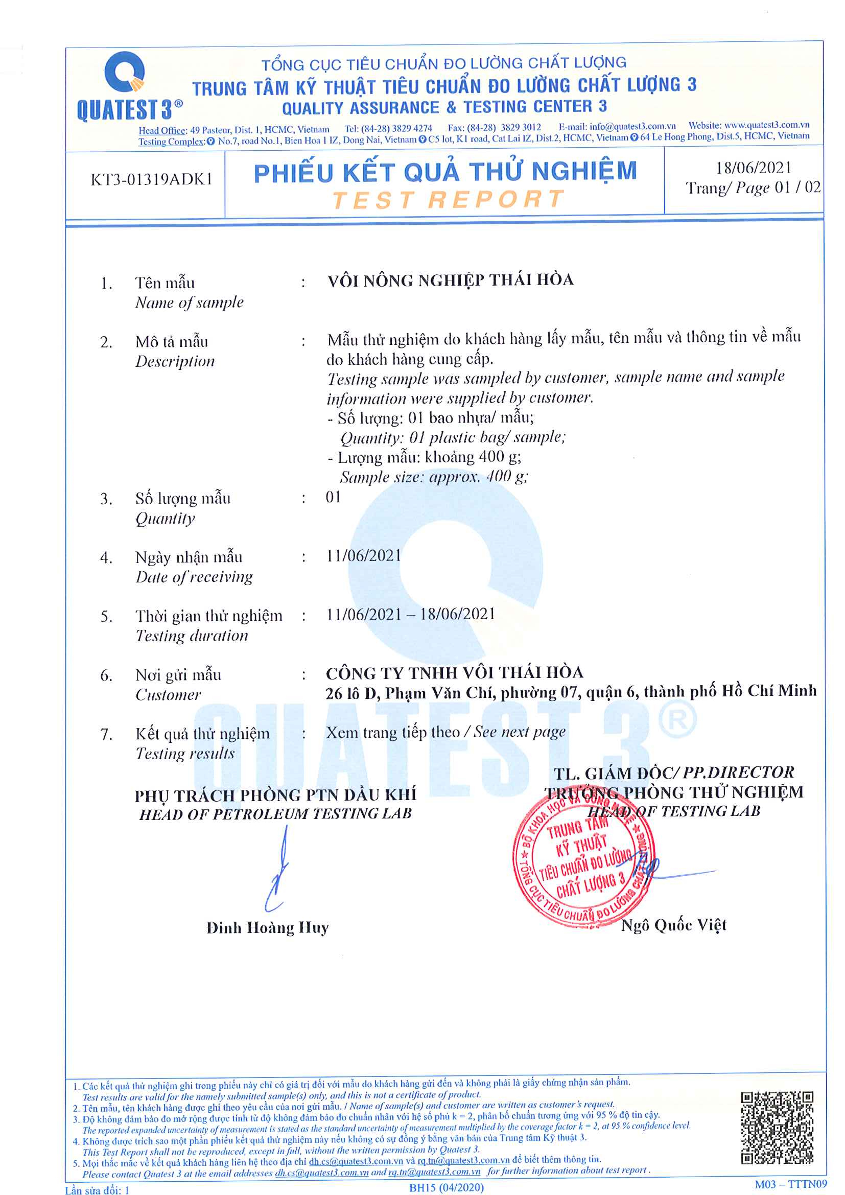 Xuất xứ: Công ty TNHH VÔI THÁI HÒA